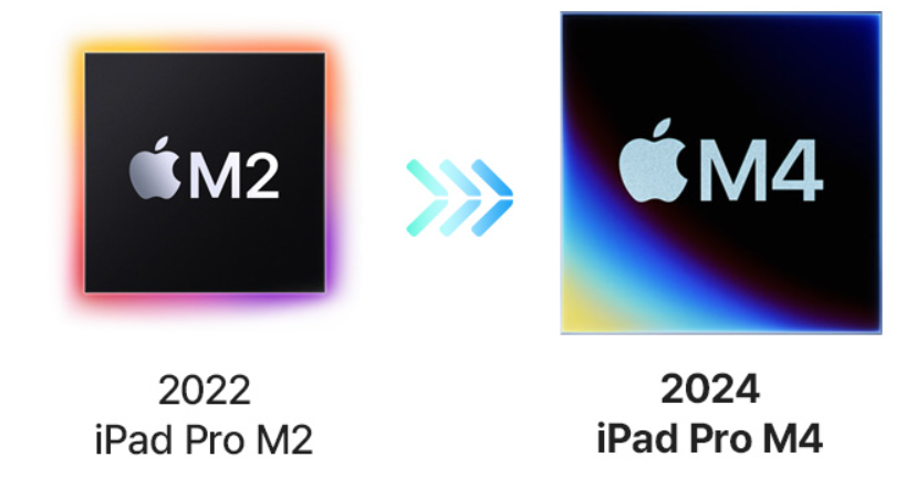 2024년 아이패드 프로는 새로운 M4 칩셋을 탑재하여 2022년 모델인 전작에 비해 비약적인 발전을 이루어냈습니다. M4 칩셋은 9코어 CPU로 구성되어 있으며, 1TB 이상 모델에서는 10코어로 동작합니다. 이는 M2 칩셋의 8코어 구성에 비해 최대 1.5배 더 빠른 속도를 제공합니다.
