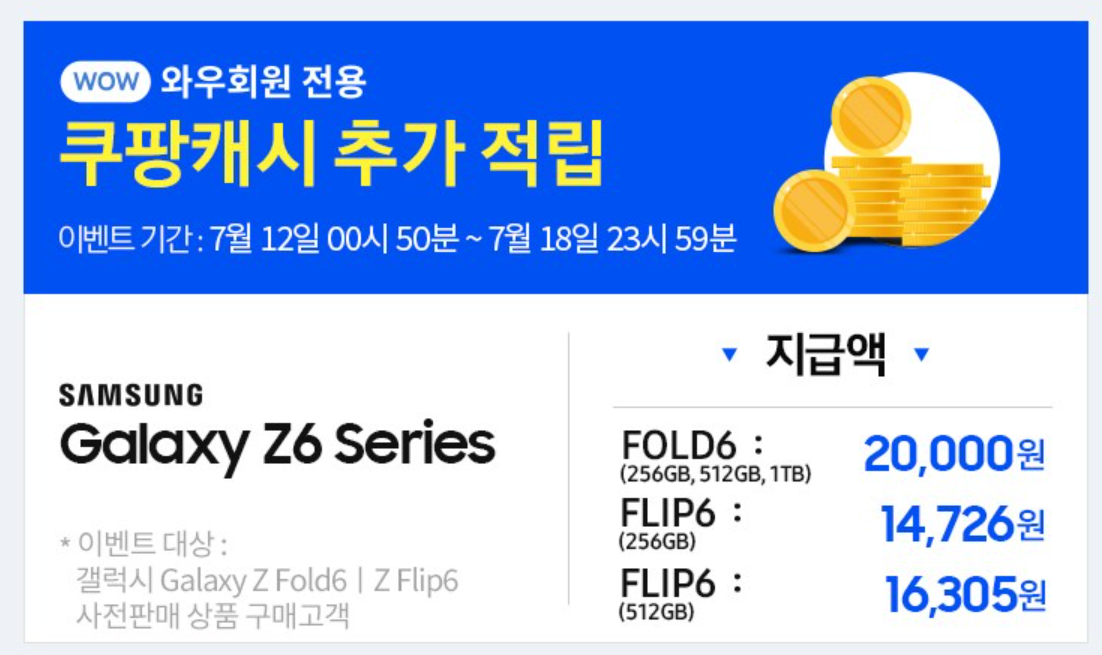 - 와우회원에 한하여 최대 쿠팡캐시 2만원 적립