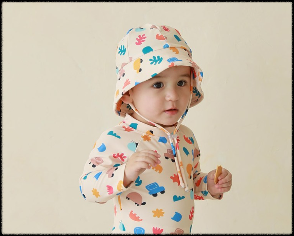 1. 아이엠베베 유아용 일체형 래쉬가드 + 플랩캡 세트