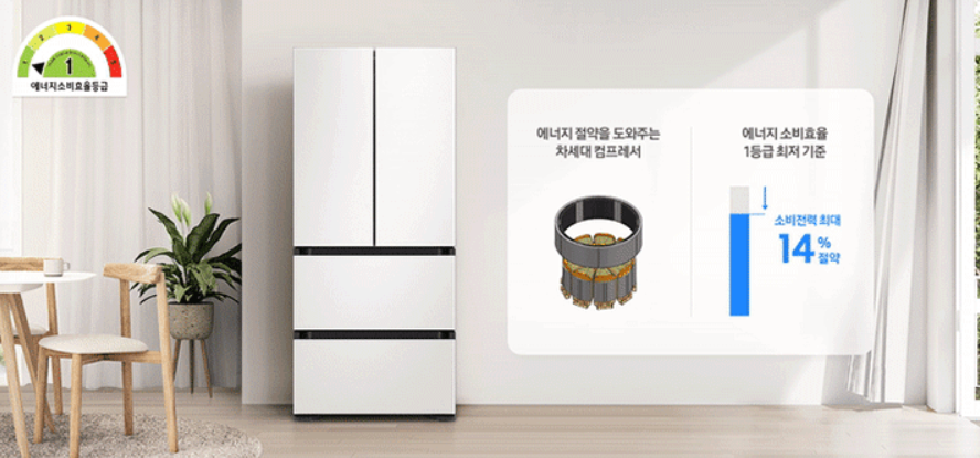 삼성 김치냉장고는 23년도에 에너지 절감 모델이 추가되었습니다. 에너지 절감 모델은 차세대 디지털 컴프레셔를 적용하여 소비전력을 절약할 수 있게 도와주는 모델입니다.